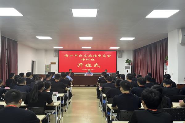 2023年5月29日上午,海口市公安局辅警岗前培训班在我院顺利开班。海口市公安局政治部副主任、四级高级警长陈革,海南政法职业学院继续教育部副主任冯小燕出席开班式。来自海口市公安局琼山分局、美兰国际机场分局、特警支队、城警支队共55名学员参训。开班式由海口市公安局政治部辅警管理科负责人何丽艳主持。