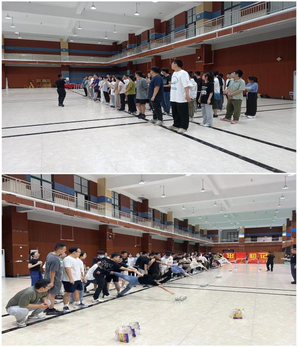 为提升海南省琼海市2022年度新录用公务员的综合素质,充分发挥团队协作意识,增强团队凝聚力和战斗力,激发集体荣誉感,2023年5月31日晚,海南省琼海市2022年度新录用公务员“新苗”计划培训班87名学员在海南政法职业学院战训馆开展拓展训练。