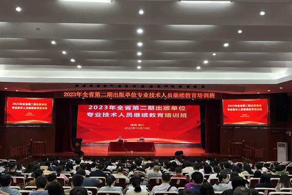 2023年10月18日,2023年全省第二期出版单位专业技术人员继续教育培训班在我院顺利开班。海南省委宣传部出版处二级调研员鲍观清出席开班式。来自海南省各图书、音像电子、期刊出版单位编辑共263人参加培训。