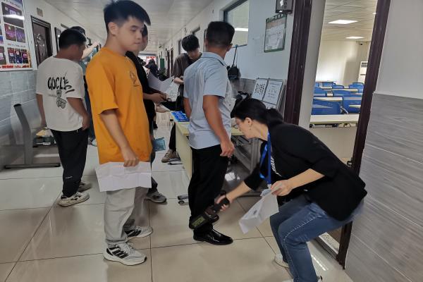 (监考员对考生进行安检 李兰芳 摄)