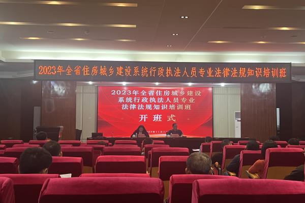 为进一步提高海南省住房城乡建设系统行政执法人员专业法律法规知识水平和业务能力,更好地为海南自贸港建设营造一流的法治化营商环境,11月22日下午,2023年全省住房城乡建设系统行政执法人员专业法律法规知识培训班在我院顺利开班。海南省住房和城乡建设厅城市管理监督处二级调研员王建堂出席开班式。来自海南省全省住房城乡建设系统行政机关、法定授权组织、受委托组织、派出机构等从事行政执法工作的行政执法人员共70名学员参训。开班式由海南省住房和城乡建设厅城市管理监督处二级主任科员李亚男主持。