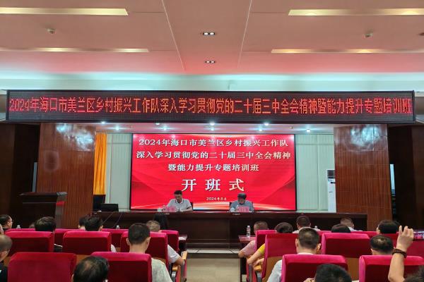 开班式上王仁佳副部长作动员讲话,并强调此次培训的目的是要以习近平新时代中国特色社会主义思想为指导,坚持和加强党对农村工作的全面领导,全面贯彻落实党的二十届三中全会精神,紧紧围绕推动党中央、省委、市委、区委有关乡村振兴战略的重大决策部署,在基层落地见效的目标,按照全面覆盖、分类指导、严格管理、有效激励的原则,聚焦产业兴旺、生态宜居、乡风文明、治理有效、生活富裕,全面提升海口市美兰区乡村振兴工作队的综合素质,进一步增强工作队员的各项能力,打造一支政治坚定、作风扎实、能力较强、实绩突出、群众满意的乡村振兴工作队。