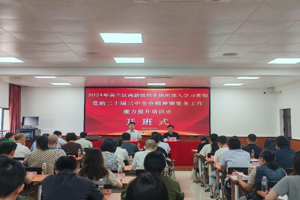 为深入学习贯彻党的二十届三中全会精神,切实把海口市美兰区广大党员干部群众的思想和行动统一到会议精神上来,10月14日上午,2024年美兰区两新组织党组织深入学习贯彻党的二十届三中全会精神暨党务工作能力提升培训班在我院顺利开班。海口市美兰区委社会工作部副部长谢容良出席开班式,来自海口市美兰区两新组织党务工作者共63人参训。开班式由海口市美兰区两新党建服务中心主任莫招君主持。