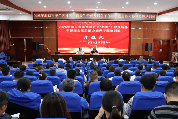 2025年5月14日上午,2025年海口市美兰区社区“两委”干部及后备干部综合素质能力提升专题培训班在我院顺利开班。中共海口市美兰区委党校常务副校长王仁佳、一级科员陈梦莹出席开班式。来自海口市美兰区社区“两委”干部及后备干部共113人参加开班式。
