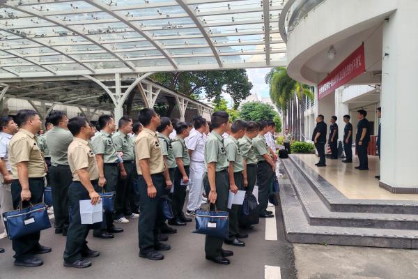 考试期间,海南省退役军人事务厅党组成员、副厅长王平,海南省军区转业办大校主任彭祖金,海南省退役军人事务厅移交安置处(军休服务管理处)处长李启胜,海南省委组织部公务员二处处长武欣,海南省考试局社会考试处处长严川耘以及海陆空等部队相关负责人到我院巡视考务工作,我院继续教育部主任刘志博全程陪同。